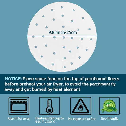10 Inch Air Fryer Liners, Set of 200, 5/6/7/8/9 Inch Bamboo Steamer Liners/Air Fryer Perforated Parchment Paper for Air Fryer, Steaming Basket and More