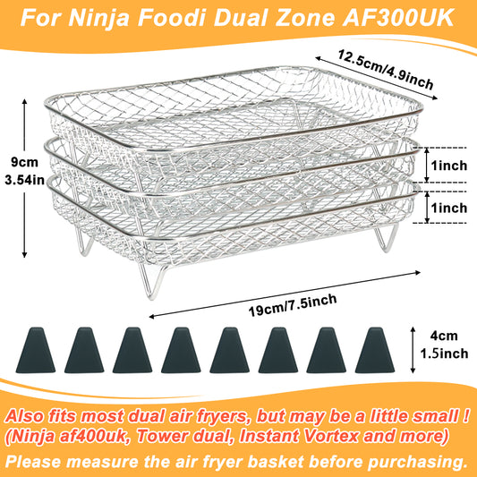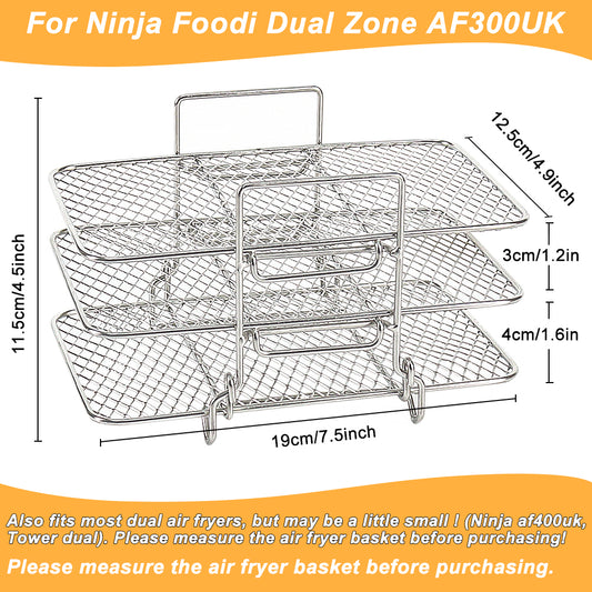 BYKITCHEN Air Fryer Racks for Ninja Dual, Three Layer Stainless Steel Cooking Rack, Air Fryer AF300UK AF400UK Accessories, Grilling Rack for Ninja/Salter/Tower/EMtronics Double Drawer Fryer