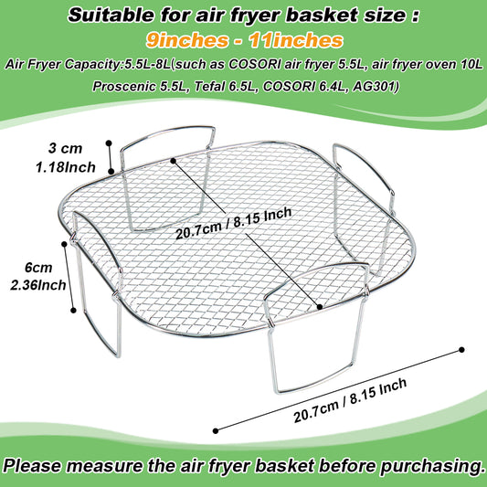 BYKITCHEN Air Fryer Racks, Square 304 Stainless Steel Air Fryer Basket, Air Fryer Grill/Shelf Rack, Air Fryer Accessories for Instant Vortex, Cosori, Tower, Gourmia Air Fryer & Oven