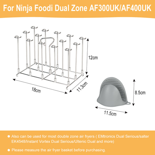 BYKITCHEN Skewer Stand for Ninja Dual Air Fryer, Stainless Steel Kebab Rack, Accessories for Ninja AF300UK/AF400UK/AF451UK/AF500UK,Also Compatible with Salter/Instant/EMtronics 9L Double Drawer Fryer