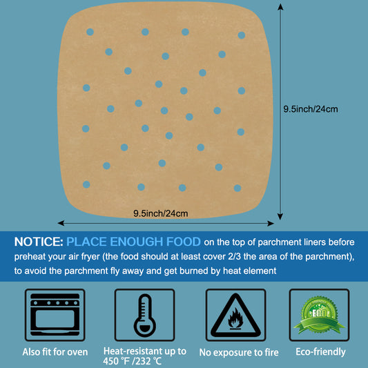 Air Fryer Parchment Paper, Set of 200, 8.5 inch Square Airfryer Liners/Steaming Parchment Liner/Perforated Parchment Paper for Air Fryer, Steaming Basket and More
