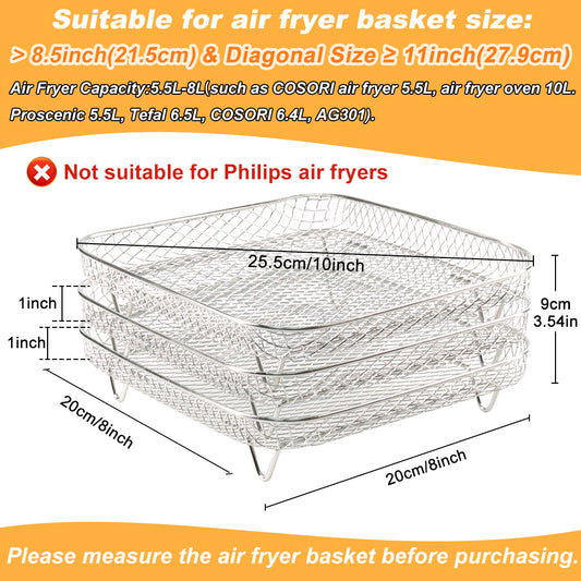 BYKITCHEN Air Fryer Racks, Square Three Layers Stacking 304 Stainless Steel Rack, Air Fryer Basket Tray, Air Fryer Accessories, Grilling Rack, Cooking Rack for Instant, Cosori Air Fryer