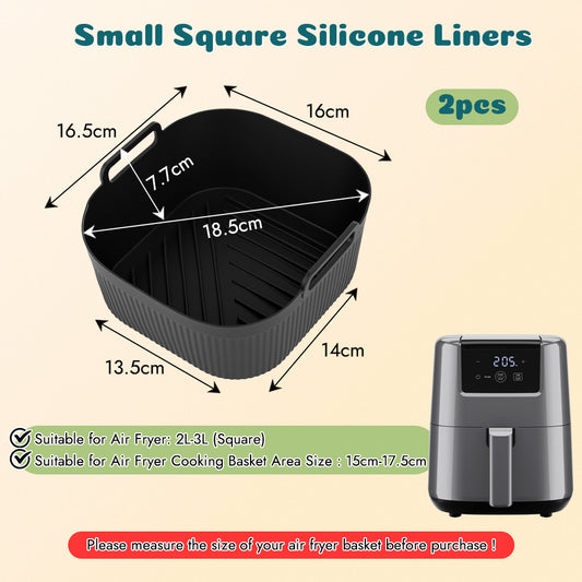 BYKITCHEN 9 Inch Square Silicone Air Fryer Liners for 6 to 8QT, Set of 2, Reusable Silicone Airfryer Tray Insert, Air Fryer Accessories for Corsori 6QT, Ninja Airfryer Pro XL 6.5QT, Gourmia & More