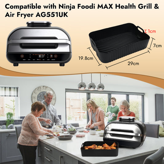 BYKITCHEN Reusable Air Fryer Silicone Liners for Ninja FG551/DG551/IG651 Foodi Smart XL Indoor Grill, Rectangle Silicone Air Fryer Liners, Ninja Foodi Grill Accessories
