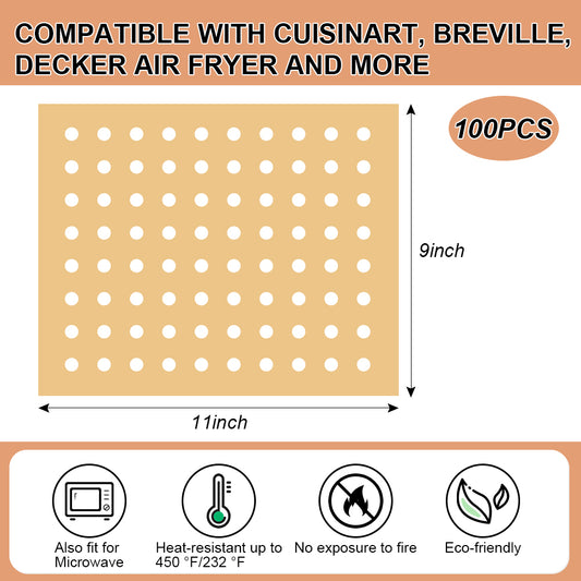 BYKITCHEN Air Fryer Oven Liner, 9x11 Inch, Unbleached Rectangle Air Fryer Parchment Paper, Compatible with Cuisinart, Breville, Emeril Lagasse and More, Airfryer Toaster Oven Accessories(Set of 100)