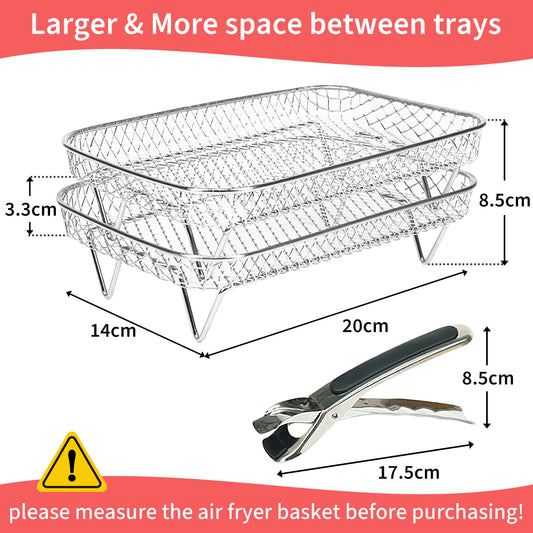 BYKITCHEN Air Fryer Racks, Large 304 Stainless Steel Rack with Clip, Air Fryer Accessories for Ninja Dual AF400UK/AF451UK 9.5L/Tower/Instant Vortex/EMtronics Double Drawer Fryers (2 Layers)