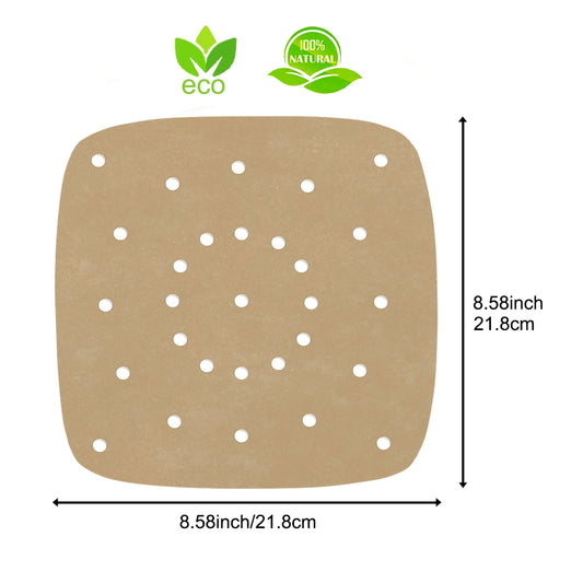 Air Fryer Parchment Paper, Set of 200, 8.5 Inch Unbleached Perforated Square Air Fryer Liner Sheets for Airfryer, Steaming Basket and More(7.5/8.5/9.5in Available)