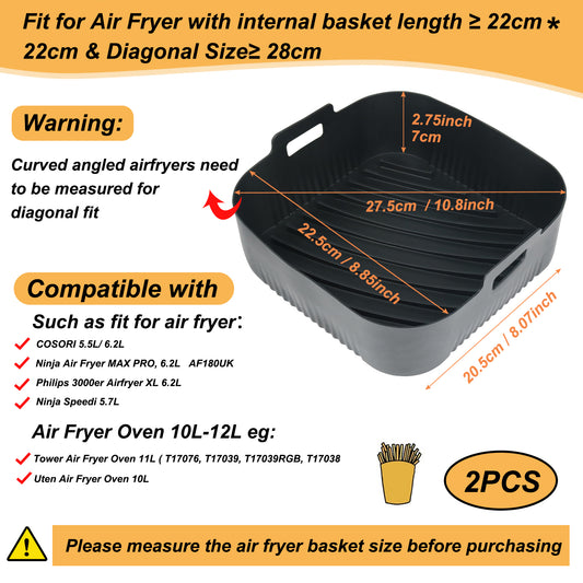 BYKITCHEN 2pcs Air Fryer Silicone Liner for Ninja Dual, Air Fryer Accessories for Tower/MOONCOOK/Salter/Ninja AF300UK Double Air Fryer, Reusable Silicone Liners/Pot for Air Fryer Baskets