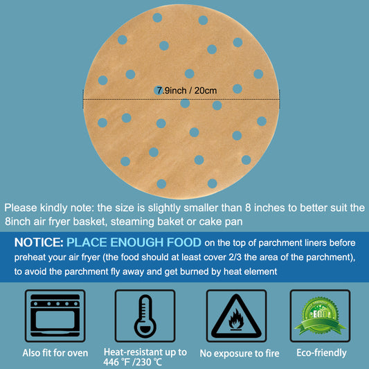 Round Air Fryer Liners, Set of 200, 8 Inch Air Fryer Parchment Paper/Bamboo Steamer Liners for Air Fryer, Steaming Basket and More(5/6/7/8/9/10in Optional)