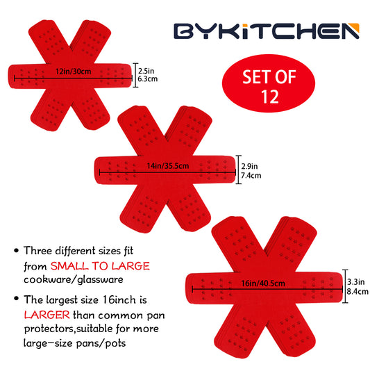 Pan Protectors for Stacking, Larger Pan Separators with Star,Set of 12 & 3 Different Size, Red Pan Protectors to Protect Pots and Pans in Kitchen Cupboard