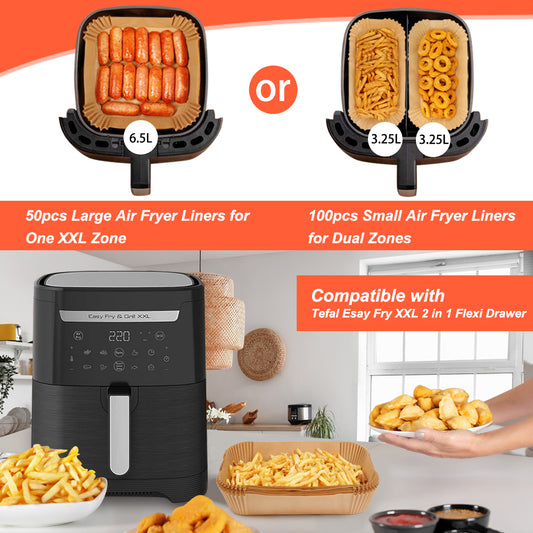 BYKITCHEN Air Fryer Liners for Tefal Easy Fry 3.25L x2 Dual Air Fryer, Paper Liners Disposable, Air Fryer Accessories for Tefal Flexi Drawer Air Fryer EY801827, for Small 2 Drawer(100PCS)