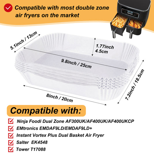 BYKITCHEN 100pcs Air Fryer Liners for Ninja Dual, Perforated Air Fryer AF300UK AF400UK Accessories, Disposable Air Fryer Paper Liner for Ninja, Salter, Tower Other Dual Zone Air Fryer