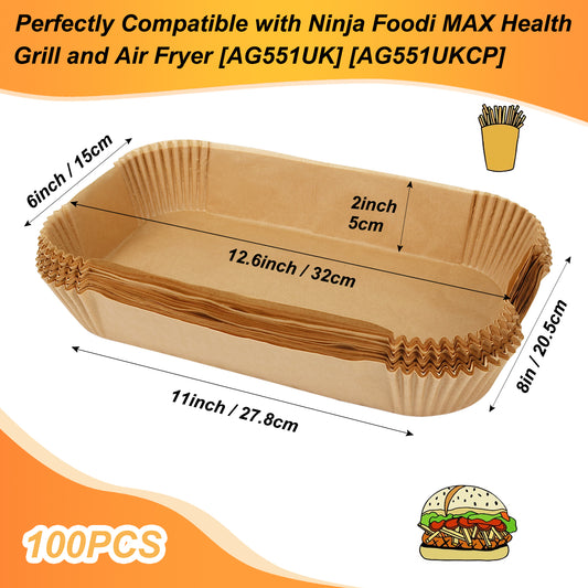 BYKITCHEN Air Fryer Liners for Ninja Foodi MAX Health Grill and Air Fryer [AG551UK], Large Disposable Air Fryer Paper Liners, Air Fryer Accessories for Ninja Grill (100PCS)