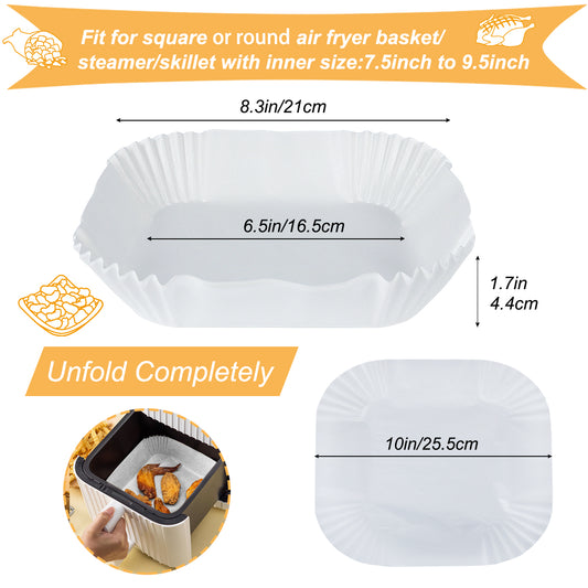 BYKITCHEN Air Fryer Disposable Liners, 50PCS Square Air Fryer Paper Liners, 6.5 inch Inner & 8.3 inch Diameter, Greaseproof Paper for Air Fryer, Compatible with COSORI, Ninja, Tower and More (White)