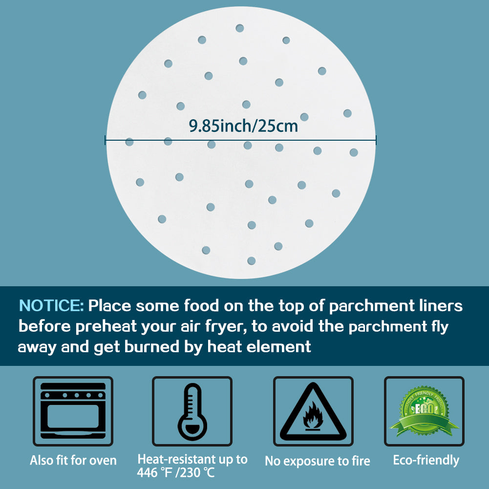 - LOTS OF PREPARED HOLES: Enough holes will help to speed up the steam circulation in air fryers or steamers.