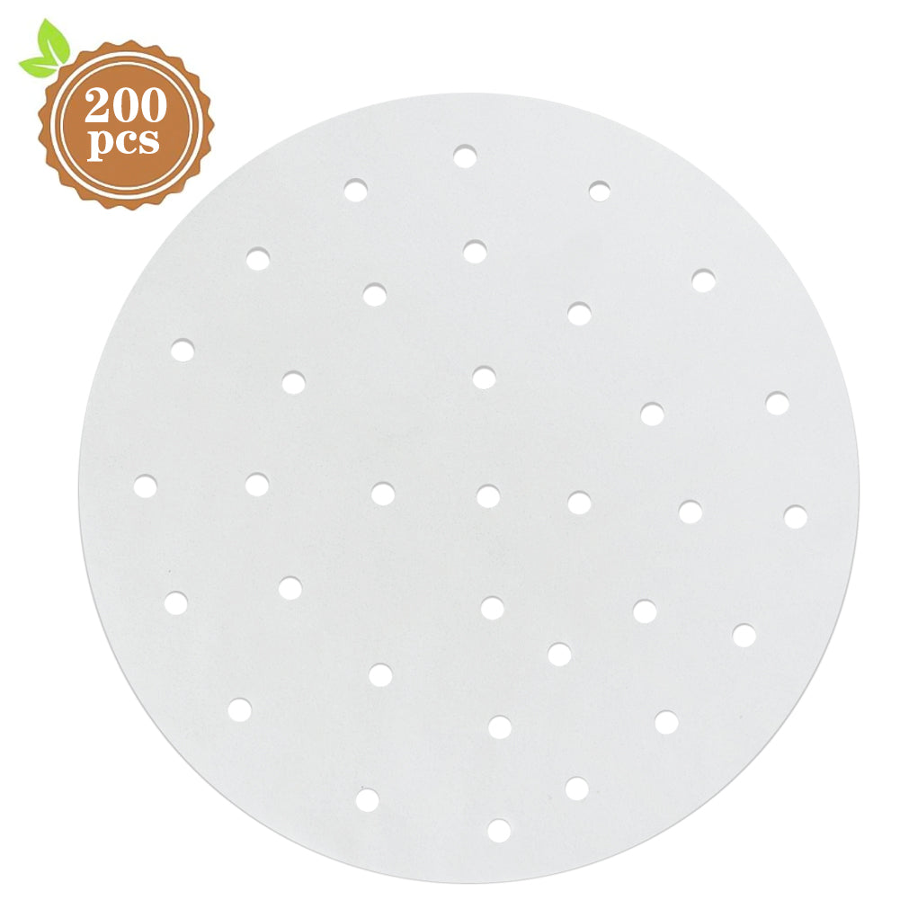 - PREMIUM MATERIAL: Our round perforated parchment liners are designed with food grade silicone paper with quality in mind, 100% Safe. Heat resistance: 446 ℉ /230 ℃, perfect for bamboo steamer, air fryer, cake pan and more. WARNING: Do Not put the parchment liners in the basket and preheat your air fryer without food on top!