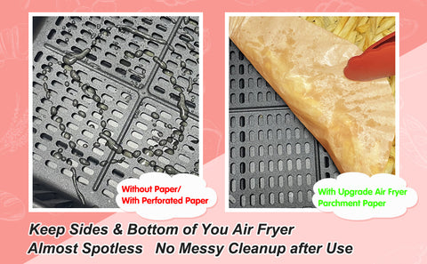 - PREMIUM AIR FRYER PAPER LINERS: Made from 100% food grade pulp with food grade nonstick coating, healthy, nonstick, grease-proof, waterproof, non-absorbent, 100% safe for daily use