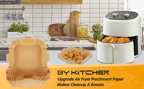 BYKITCHEN 100pcs Air Fryer Parchment Paper Liner, Square Air Fryer Liners Disposable, Greaseproof Paper for Air Fryer, Compatible with COSORI, Ninja, Tower (Unbleached)