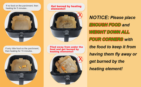1.Do not put the parchment paper in when your fryer is on pre-heat.