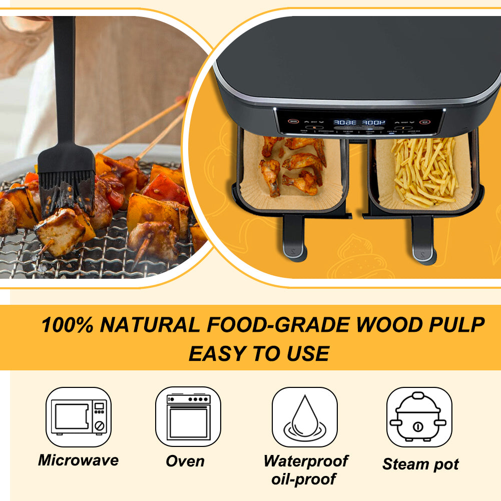 - PREMIUM DISPOSABLE AIR FRYER LINERS: Made from 100% food grade pulp with food grade nonstick coating, healthy, nonstick, grease-proof, waterproof, non-absorbent, 100% safe for daily use. And 120pcs are economic