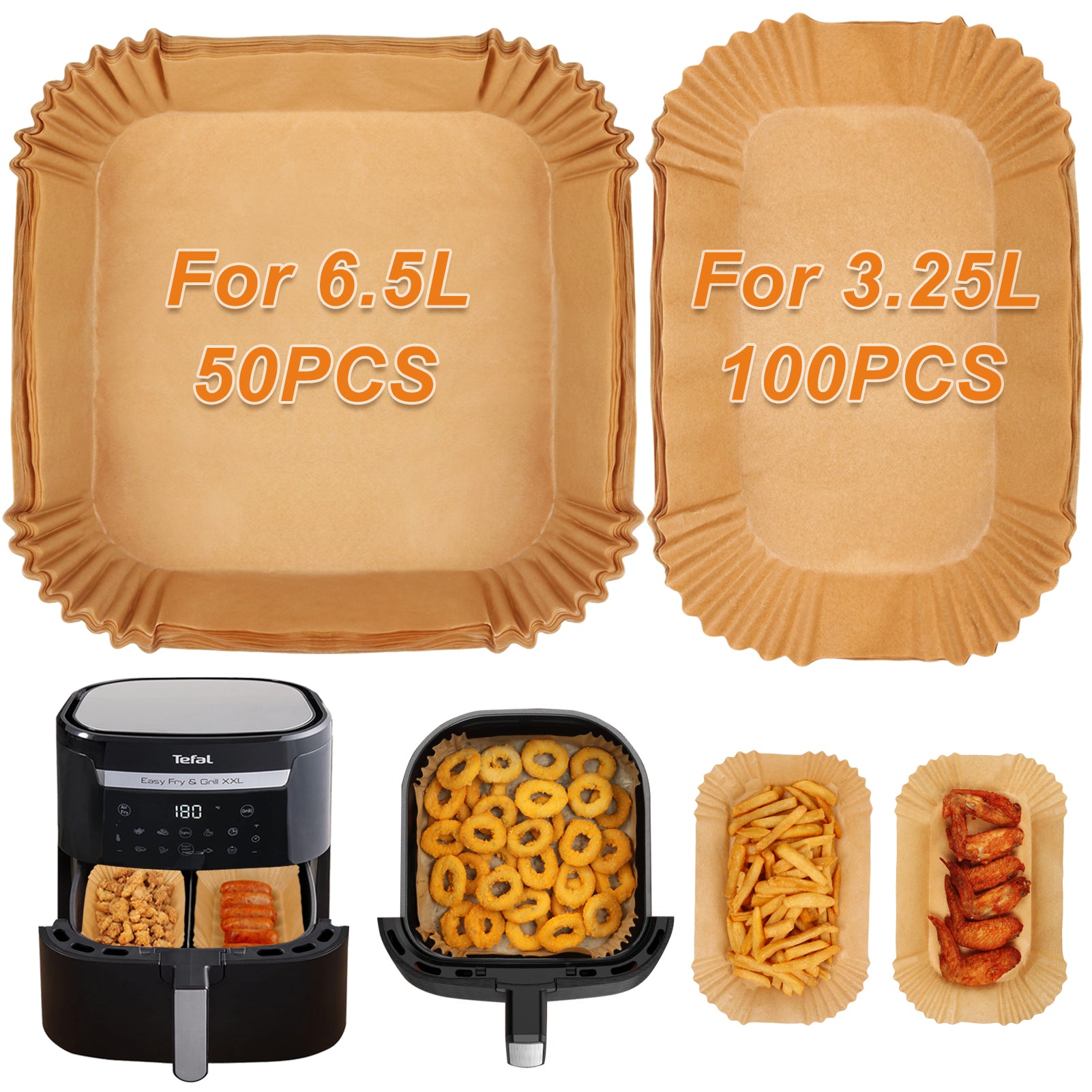 - AIR FRYER LINERS for Tefal Easy Fry Flexi Drawer Air Fryer : 50pcs big square airfryer liners with 100PCS rectangle parchment paper liners. Specially designed for Tefal Easy Fry XXL 2in1 6.5L or 3.25L x2 Drawer Capacity Dual Air Fryer & Grill (EY801827)