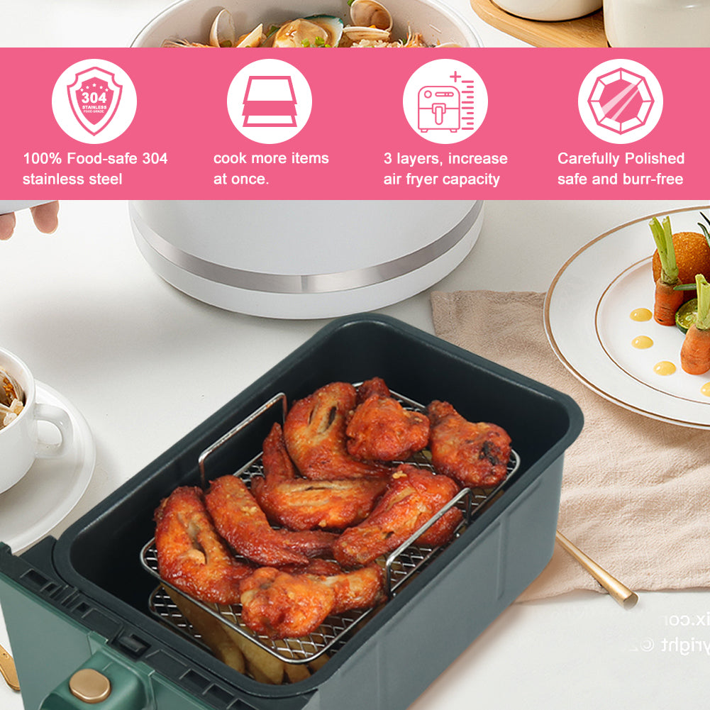 - 【Make Full Use Of Space】: Designed with three layers of space to put food for you. Increase air fryer capacity and allow you cook more items one time without touching each other. And grid design can achieve the best air circulation to make food crispier