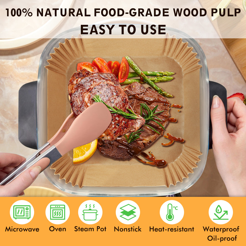- KEEP YOUR AIR FRYER CLEAN: These disposable air fryer papers liners are designed to catch food residue and grease, keeping the bottom of your portable air fryer spotless. No need for scrubbing—simply discard the air fryer liner after use for an effortless cleanup experience