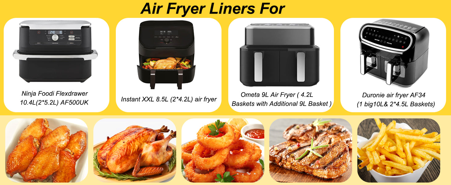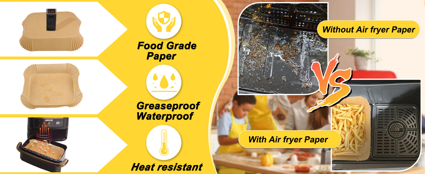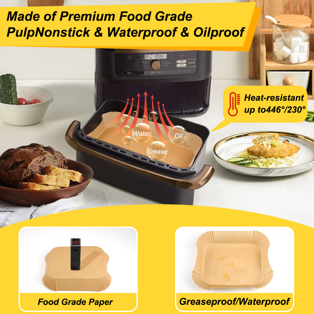 - PREMIUM AIR FRYER PAPER LINERS: Made from 100% food grade pulp with food grade nonstick coating, healthy, nonstick, grease-proof, waterproof, non-absorbent, 100% safe for daily use