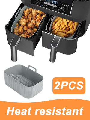 - SILICONE AIR FRYER LINERS FOR NINJA DUAL ZONE: The size of air fryer silicone pot is 19.5cm*11.8cm*7 cm. Especially suitable for Ninja Foodi Dual Zone AF300UK . Compared to dual zone air fryer paper liner, silicone liners for ninja is reusable, washable and resistant to high temperatures. And will not catch on fire like air fryer disposable paper liners. Silicone liners for ninja is a must have dual air fryer accessories