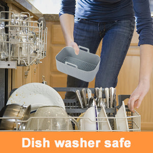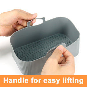- EASY TO USE & EASY TO CLEAN: Our silicone air fryer liner for dual basket is designed with handles on both sides to make transferring the food to plate easier. Our silicone rectangle air fryer liner is soft and flexible. Flipping the inside out and cleaning with a brush with warm water and dish soap will be easier to remove grease and residues. It's also dishwasher safe