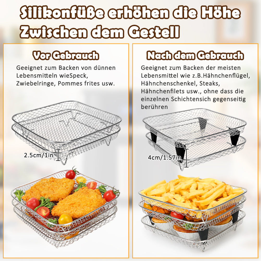 - Expand Your Air Fryer’s Potential: Maximize your fryer’s capacity with this 3-tier stackable air fryer rack—perfect for cooking multiple foods at once without them touching. Ideal for efficient meal prep and family portions
