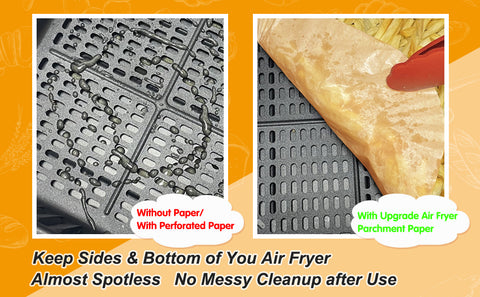 - PREMIUM AIR FRYER DISPOSABLE PAPER LINERS: Made from 100% food grade pulp with food grade nonstick coating, healthy, nonstick, grease-proof, waterproof, non-absorbent, 100% safe for daily use