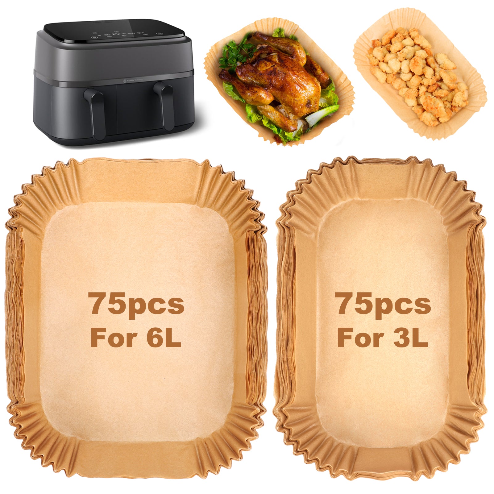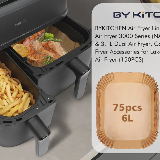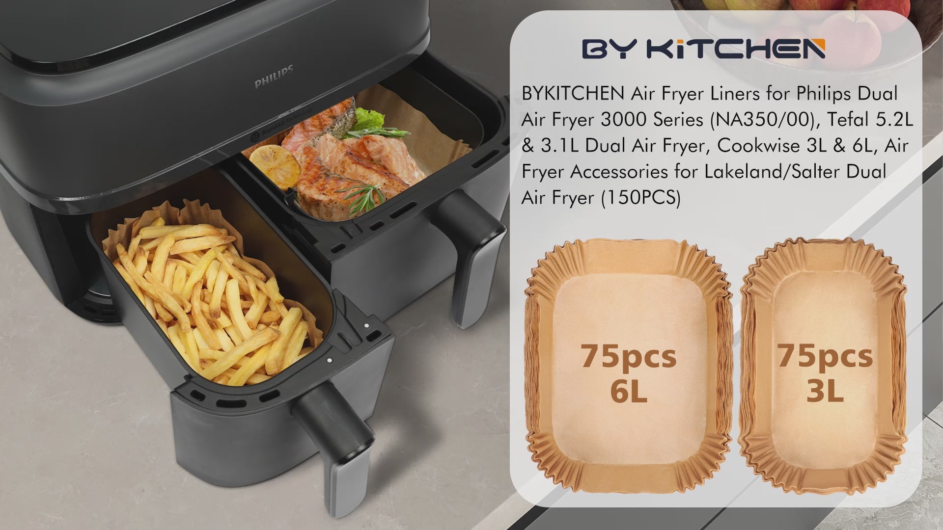 BYKITCHEN Air Fryer Liners for Philips Dual Air Fryer 3L & 6L, Tefal 5.2L & 3.1L, Cookwise 3L & 6L, Lakeland/Salter Dual Air Fryer (150PCS)