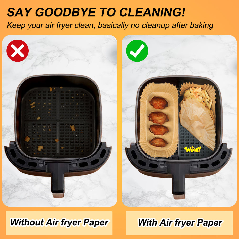 - PREMIUM AIR FRYER PAPER LINERS: Made from 100% food grade pulp with food grade nonstick coating, healthy, nonstick, grease-proof, waterproof, non-absorbent, 100% safe for daily use