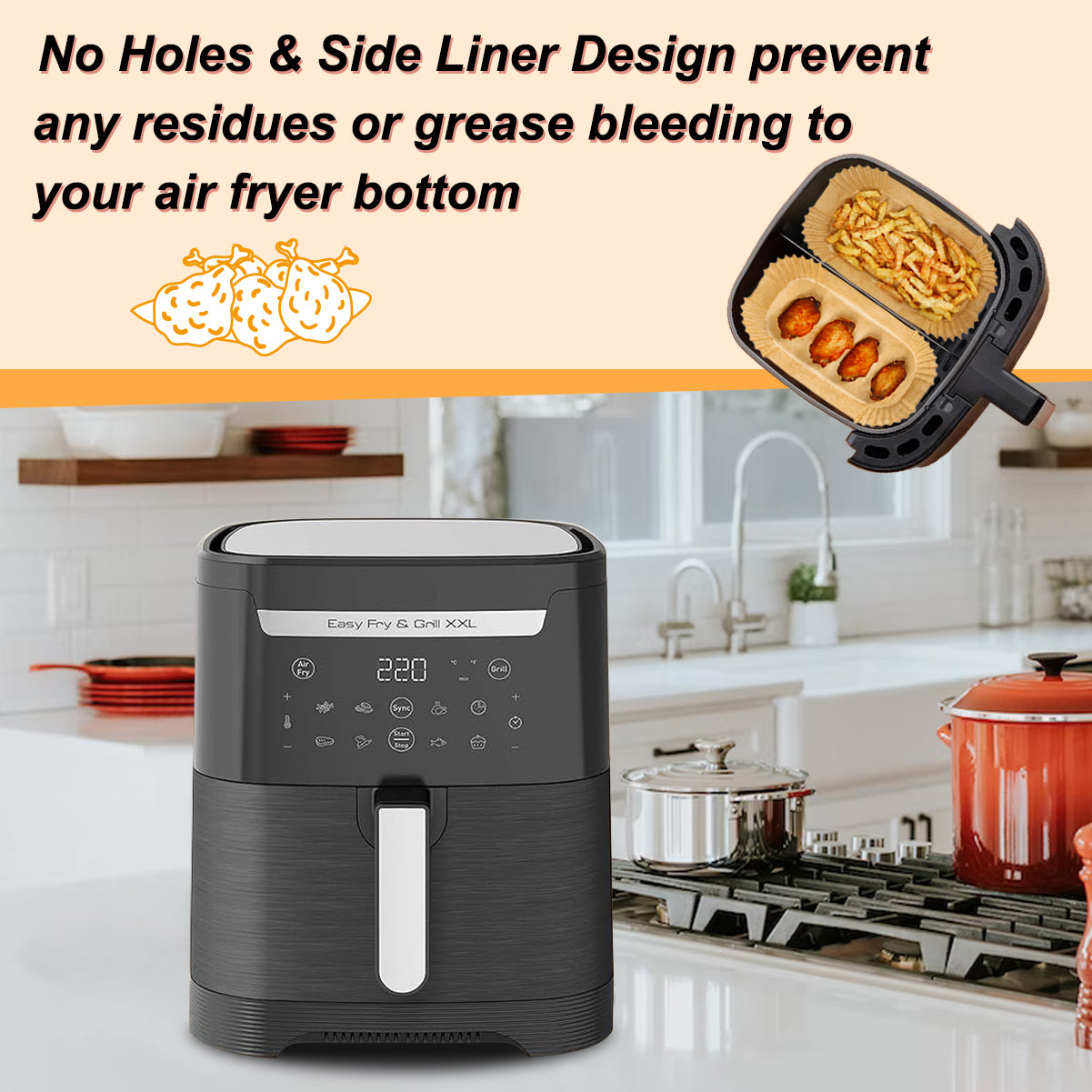 Upgrade rectangle air fryer paper with side, prevent the grease or residues to the side/bottom of air fryer, basically no cleanup after baking.