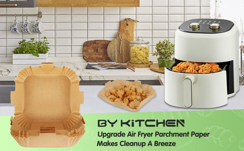 BYKITCHEN Air Fryer Liners Square, 7.9 Inch Large Air Fryer Disposable Liners, Greaseproof Parchment Paper for Air Fryer, Compatible with COSORI, Ninja, Tower Cosori (Unbleached, 50PCS