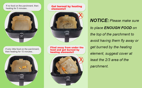 1.Do not put the parchment paper in when your fryer is on pre-heat.