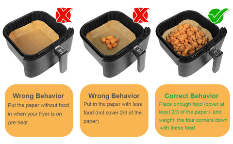 1.Do not put the parchment paper in when your fryer is on pre-heat.