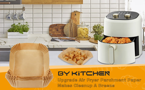 BYKITCHEN Air Fryer Paper Liner, 100 pcs Air Fryer Liners Square, Disposable Liners for Air Fryer Baskets, Air Fryer Accessories for COSORI, Ninja, Tower, Salter (Unbleached)