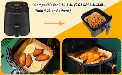 - WIDE USES: These square air fryer disposable paper liners can be used for baking or cooking various of food, such as chips, chicken, cakes, meat and more, perfect for home/outdoor cooking, baking, camping and party, etc