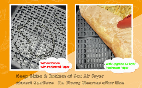 Upgrade square air fryer parchment paper with side, prevent the grease or residues to the side/bottom of air fryer, basically no cleanup after baking.