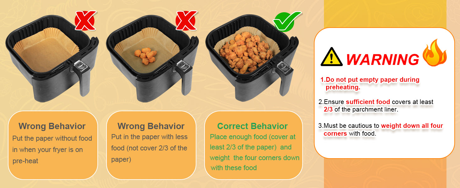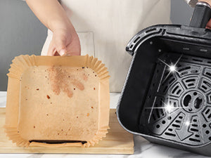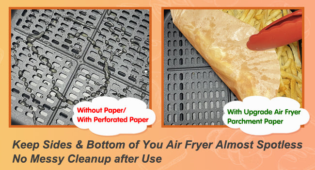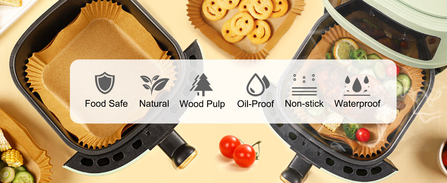 - PREMIUM AIR FRYER SHEETS: Made from 100% food grade pulp with food grade nonstick coating, healthy, nonstick, grease-proof, waterproof, non-absorbent, 100% safe for daily use