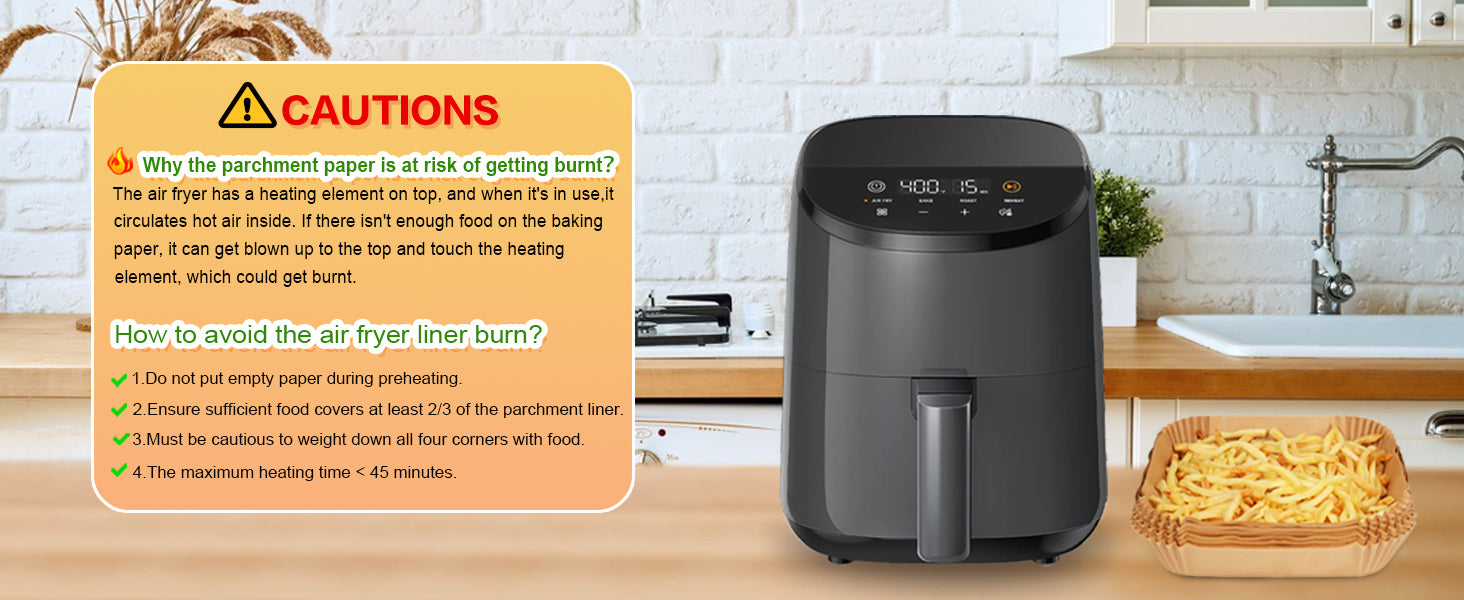 - HEAT RESISTANCE & EASY TO USE: Heat safe up to 450 degree F (232℃), Microwave and Oven safe. These non-stick disposable air fryer filters are all with bowl shape and exact size, no need cut or fold. Just put the paper liners in the basket and then throw into a rubbish bin after use.WARNING: PLACE ENOUGH FOOD on the top of the liners to avoid having them fly away or get burned by the heating element