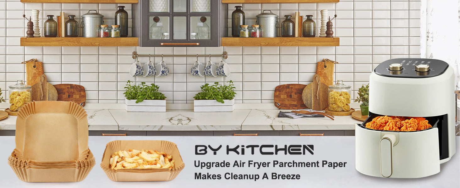 BYKITCHEN Air Fryer Parchment Paper Liner, 50PCS Square Air Fryer Liners Disposable, Greaseproof Paper for Air Fryer, Compatible with COSORI, Ninja, Tower Cosori (Unbleached)