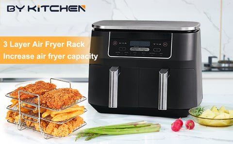 -Three layers ,Increase air fryer capacity. Allow you cook more items one time