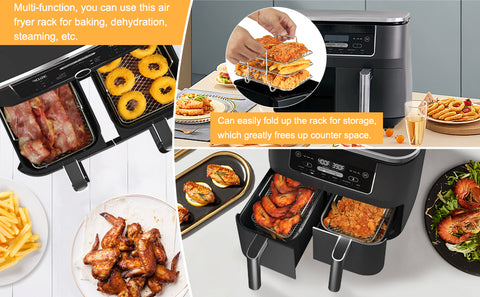 - 【Air Fryer Rack for Ninja Dual Air Fryer】: Size: L*W*H 19cm*12.5cm*11.5cm Especially designed for Ninja Foodi AF300UK Dual Air Fryer, also Suitable for AF400UK, Tower 17088 and other Dual Zone Air fryer, but will be a little small