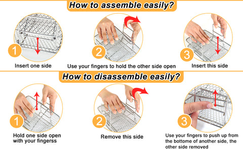 - 【High Quality Food Grade Material】 Made of high quality food grade 304 stainless steel, safe, non-toxic and durable, preventing rust and high heat resistant. Allowing you to enjoy healthy food without worries. And the edge of the air fryer rack is smooth and free of burrs, Keep your hands and air fryer safe