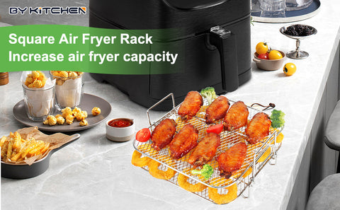 BYKITCHEN Air Fryer Racks, Square 2 Tier Air Fryer Grill/Shelf Rack, Air Fryer Accessories for Cosori XXL 5.5L, Instant Vortex 5.7L/Plus 8.5L, Tefal EasyFry 6.2L/ 6.5L, Gourmia Air Fryer & Tower Oven