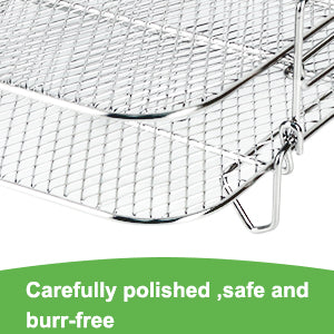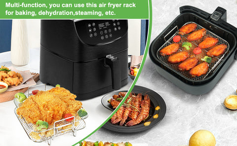 - 【High Quality Food Grade Material】 Made of high quality food grade 304 stainless steel, safe, non-toxic and durable, preventing rust and high heat resistant. Allowing you to enjoy healthy food without worries. And the edge of the air fryer rack is smooth and free of burrs, Keep your hands and air fryer safe.