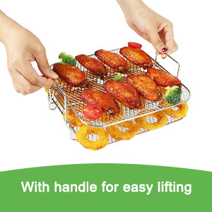 - 【Racks with Handles】 The air fryer shelves rack with handles, easy to get rack and food out of the air fryer basket